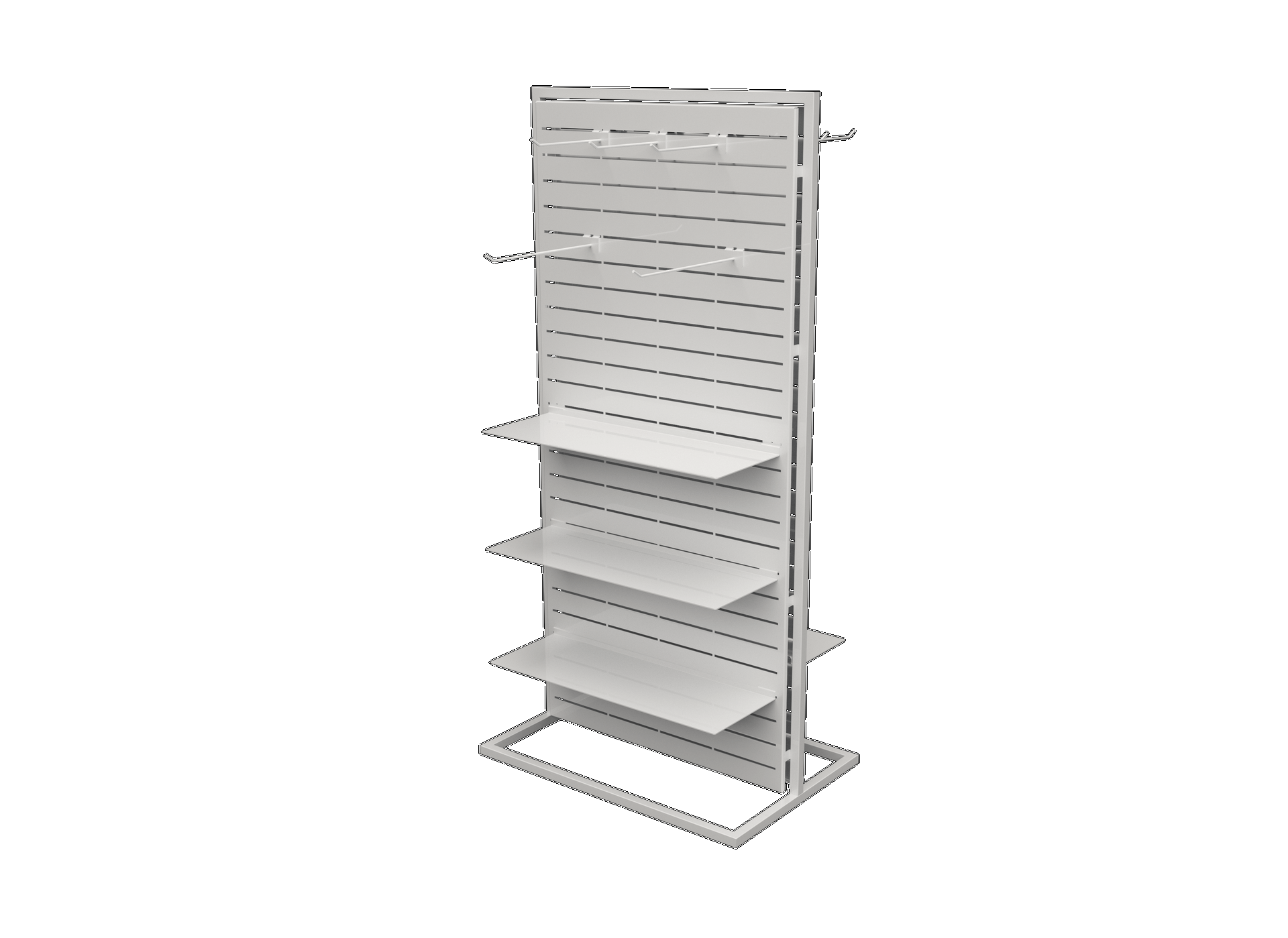 Display racks for retail — sports gear, footwear, apparel, accessories. Functional design, clear presentation.