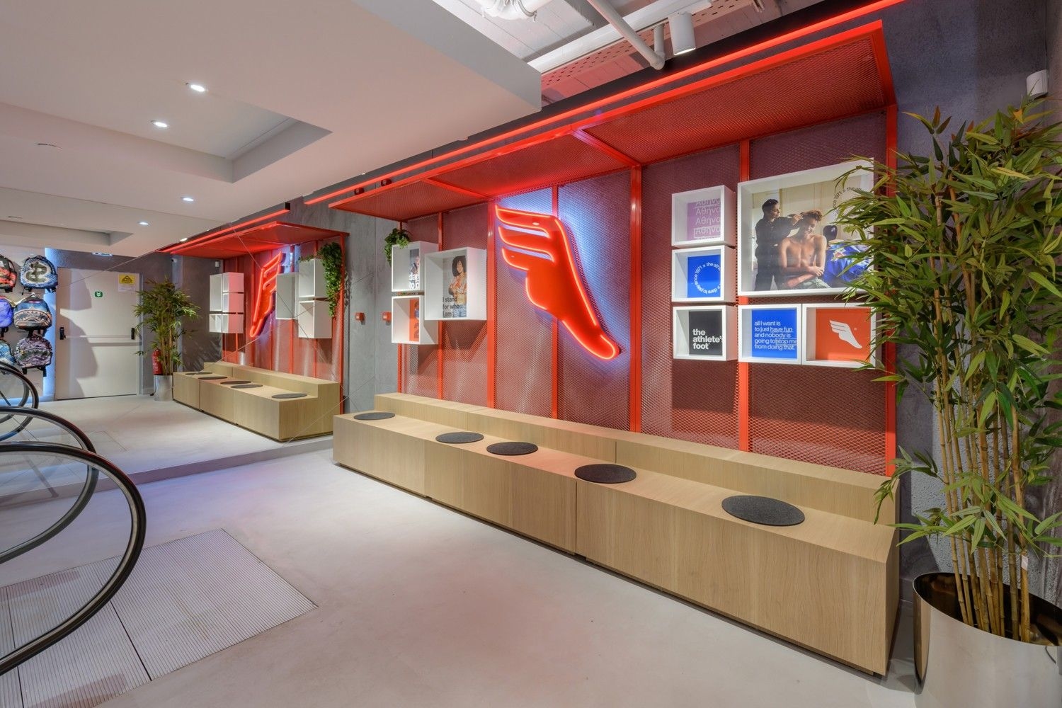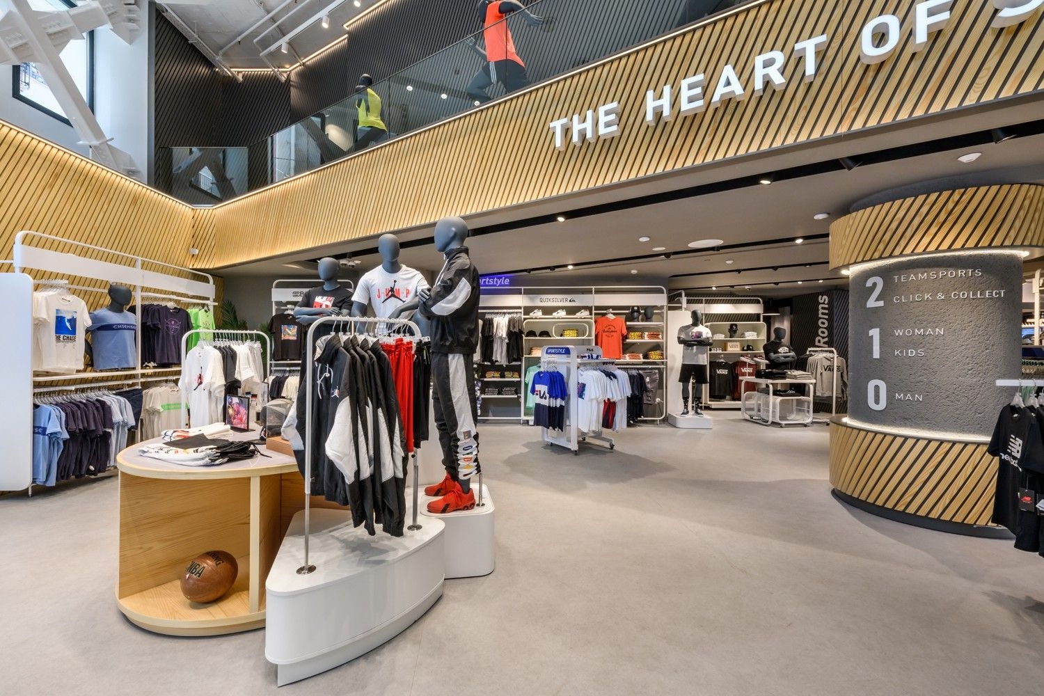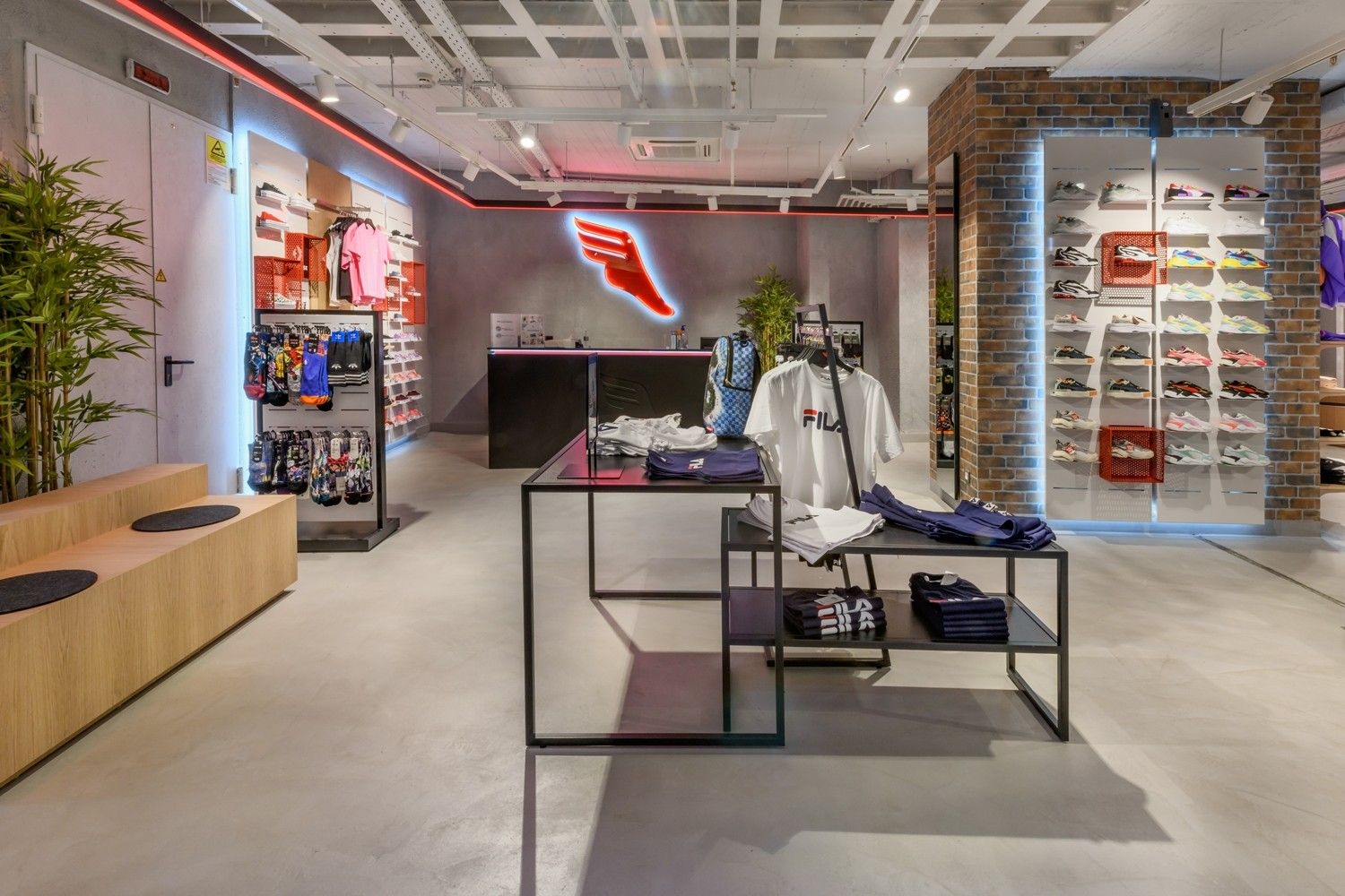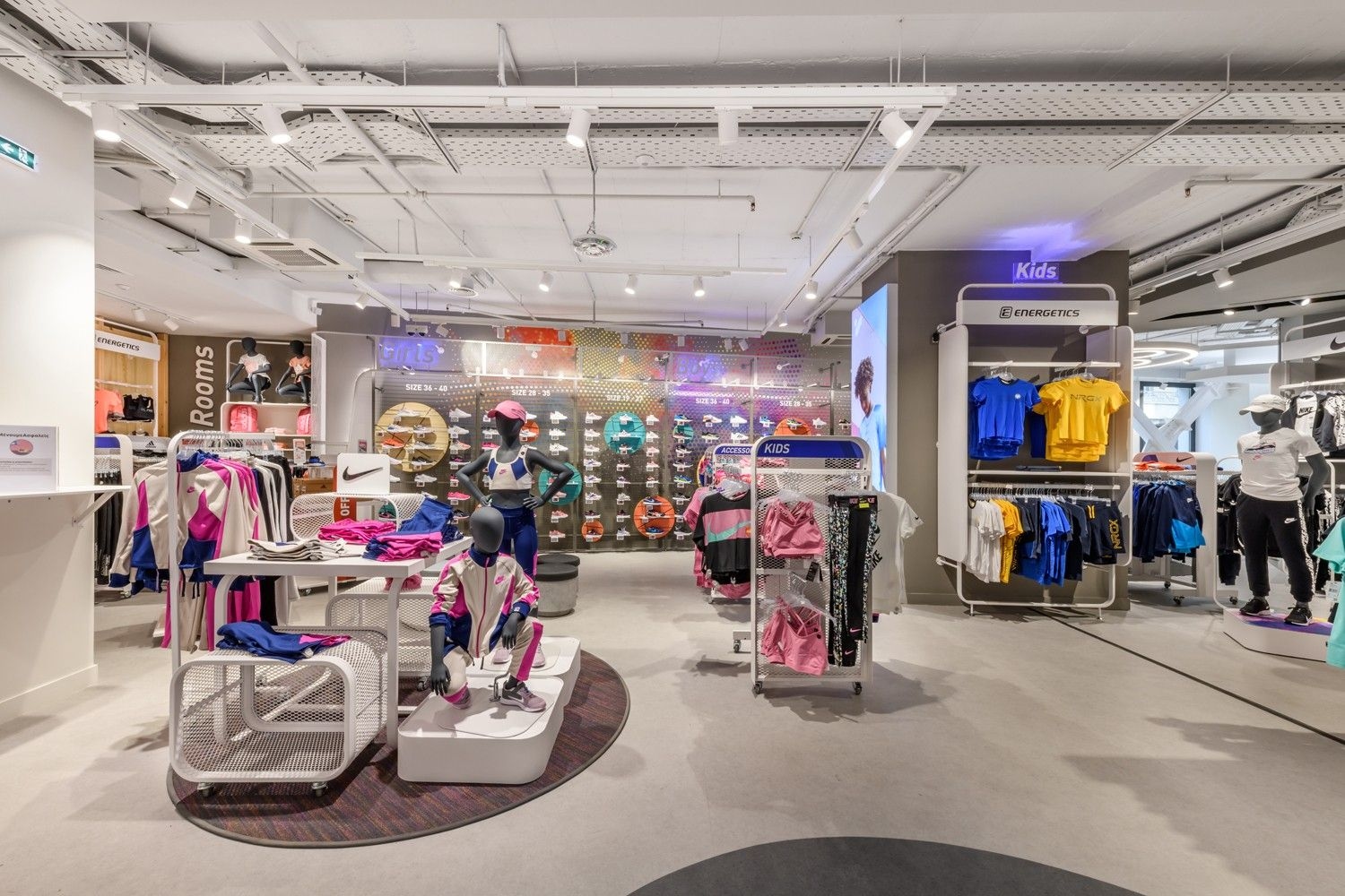 Intersport is one of our long-standing partners. Their lighting concept is based on track systems and track spotlights, complemented by decorative elements such as light rings, which give the space an elegant and sophisticated appearance. To further meet their needs, we have also developed specially designed furniture, tailored for optimal product presentation and seamless integration of lighting elements. This approach ensures functional yet visually appealing store lighting, highlighting products while creating a pleasant shopping atmosphere.